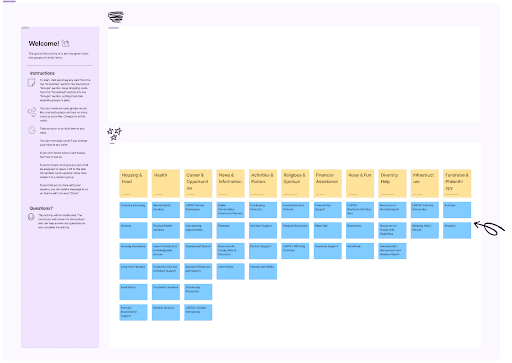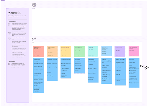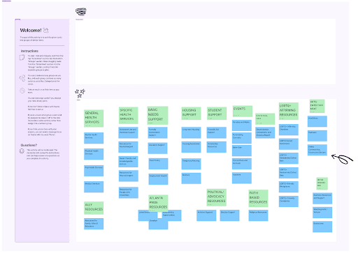 Based on the social media analysis resource categories I identified, we set out to conduct an open card sorting session where we wanted to understand where the users themselves would expect to find resources.